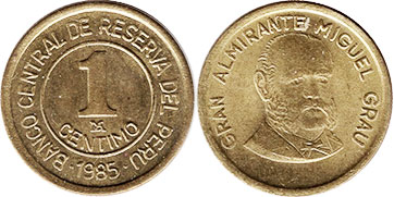 1 CENTIMO / BANCO CENTRAL DE RESERVA DEL PERU / 1985 / Monogramaa LIMA