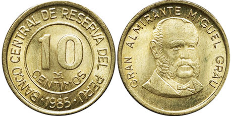 10 CENTIMOS / BANCO CENTRAL DE RESERVA DEL PERU / 1985 / Monogramaa LIMA