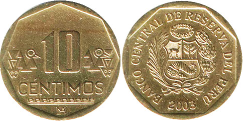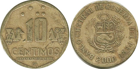 10 CENTIMOS / LIMA monograma / Braille, ornamento inca