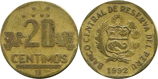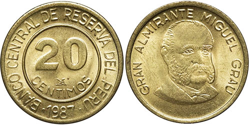 20 CENTIMOS / BANCO CENTRAL DE RESERVA DEL PERU / 1987 / Monogramaa LIMA