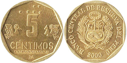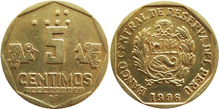 5 CENTIMOS / LIMA monograma / Braille, ornamento inca