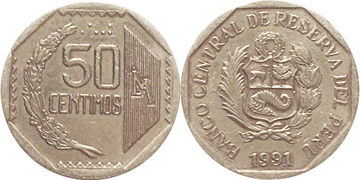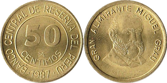 50 CENTIMOS / BANCO CENTRAL DE RESERVA DEL PERU / 1987 / Monogramaa LIMA