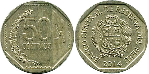 BANCO CENTRAL DE RESERVA DEL PERÜ / 2014 / Emblema nacional, coroa oval no escudo